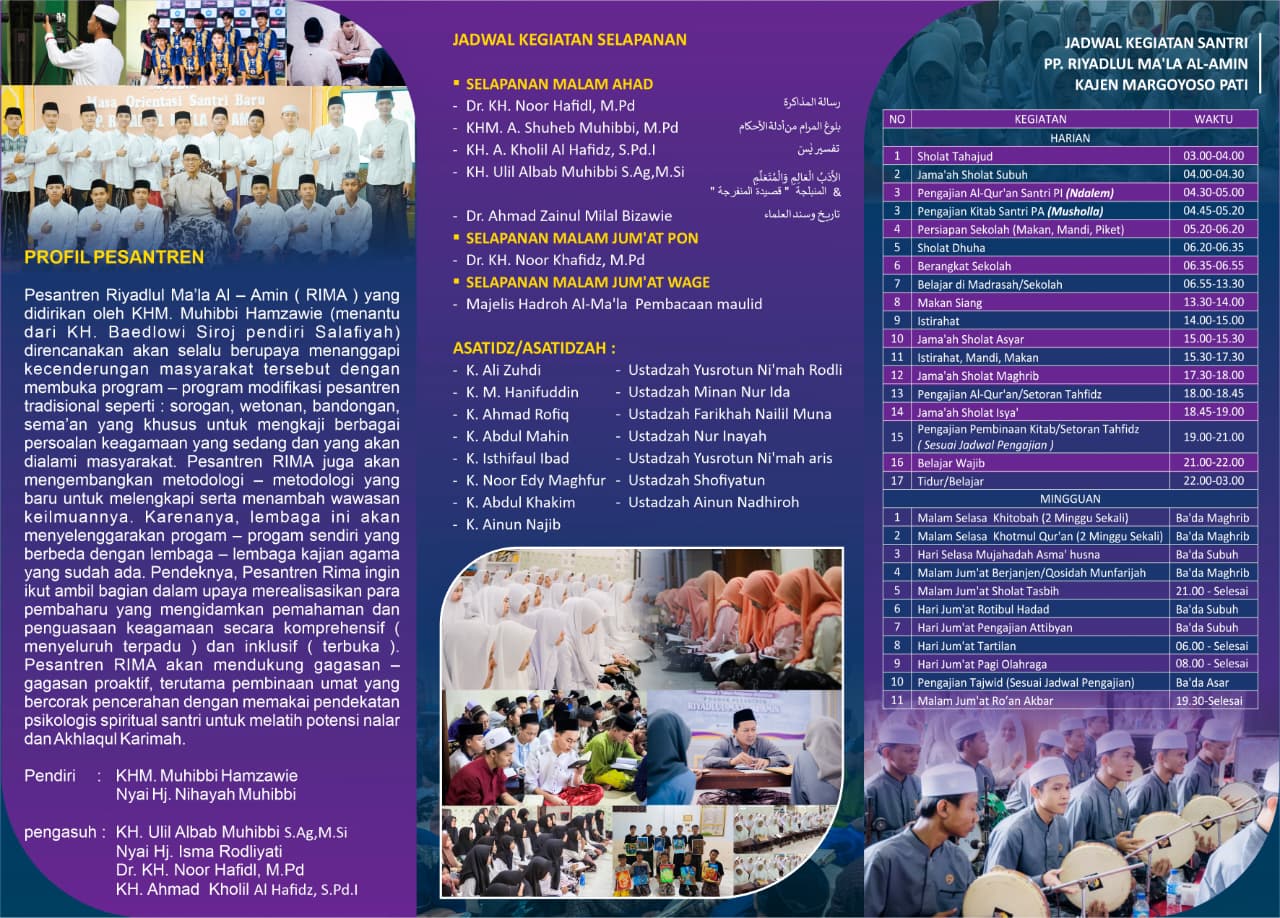 Pesantren Riyadlul Ma’la Al Amin (RIMA) akan mendukung gagasan-gagasan produktif, terutama pembinaan umat yang bercorak pencerahan dengan memakai pendekatan psikologis spiritual santri untuk melatih potensi nalar dan akhlaqul karimah.